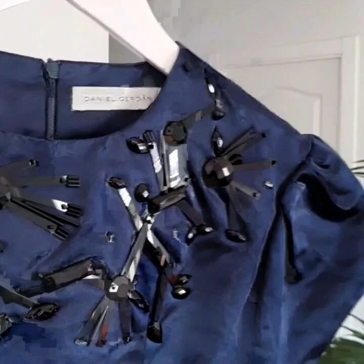 Ver tamaño completo 🌸 Vestido saco en crepe con canesú de raso duquesa de seda y aplicaciones de azabache, cristal y lentejuelas de acetato.